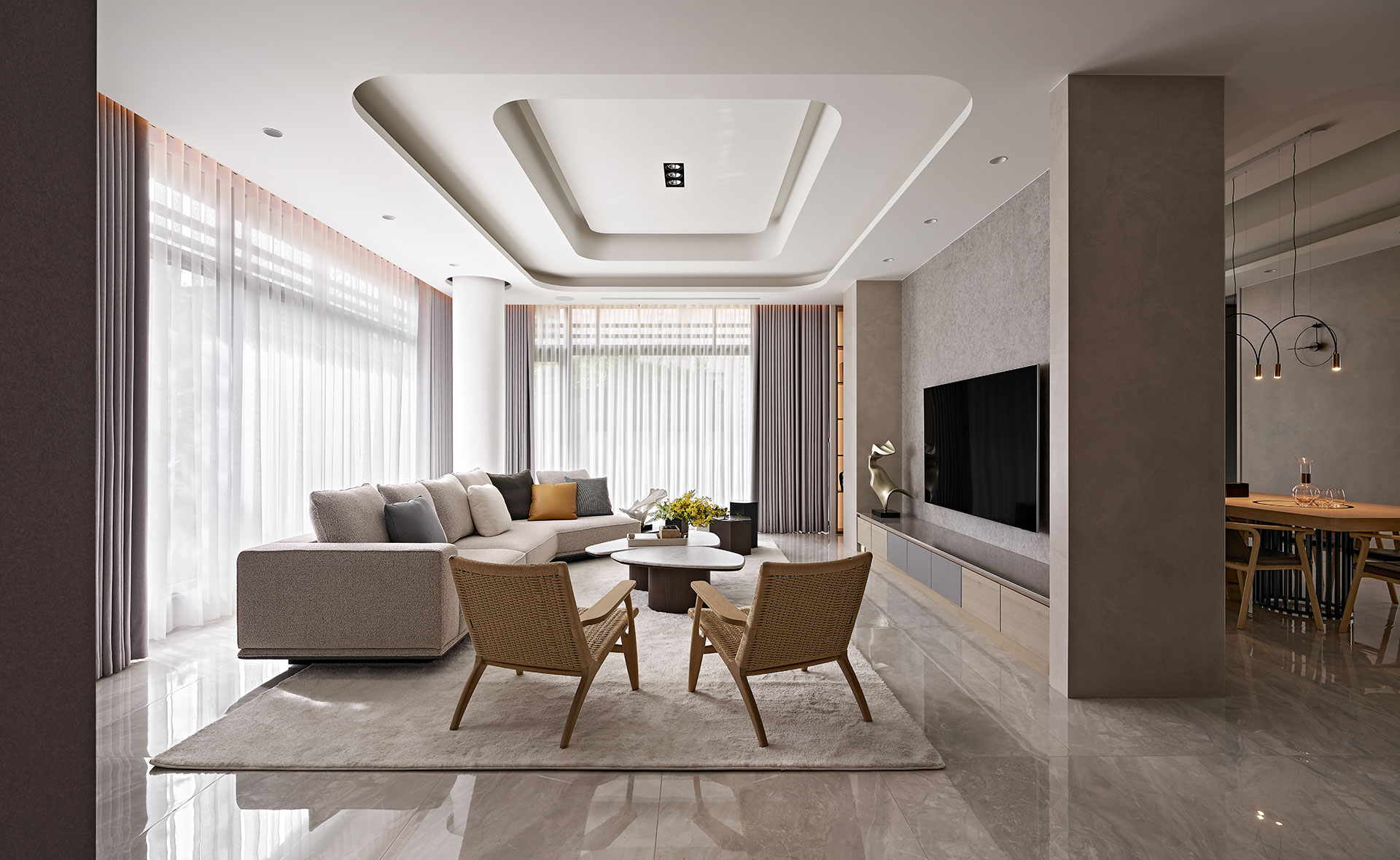 本案為屋齡12年的獨棟庭院別墅,透過全方位翻新賦予空間新生命。設計介入範圍涵蓋結構補強、格局重塑、水電重配,以及家具、軟裝、庭園景觀與家電系統整合,形成完整更新工程。將屋主對電影夢想居所的想像化為現實,打造幸福生活的居所。